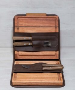 • 2 Juegos de cubiertos de mesa con mango de madera.