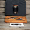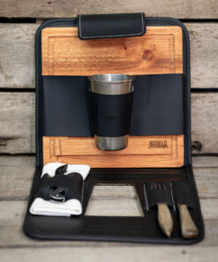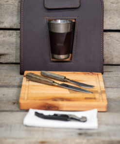 - Compartimiento interno para servilleta, cubiertos, tabla, destapador y vaso de acero.