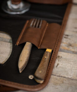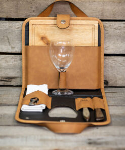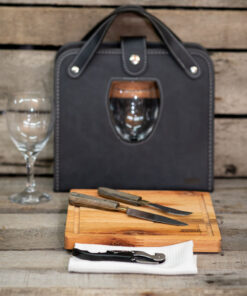 - Compartimiento interno para servilleta, cubiertos, tabla, destapador y copa de vidrio.