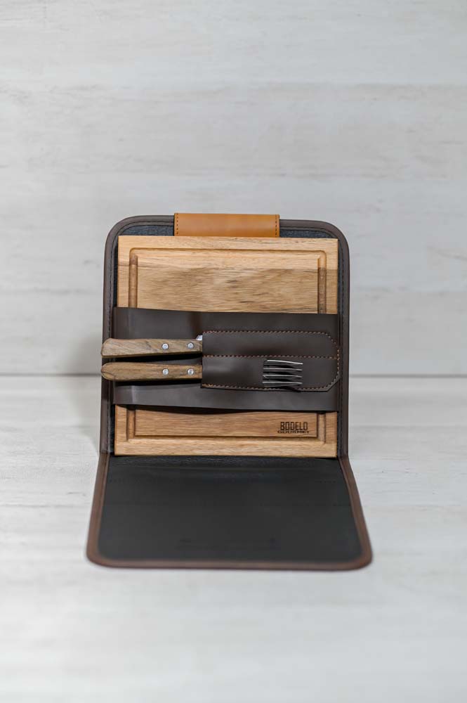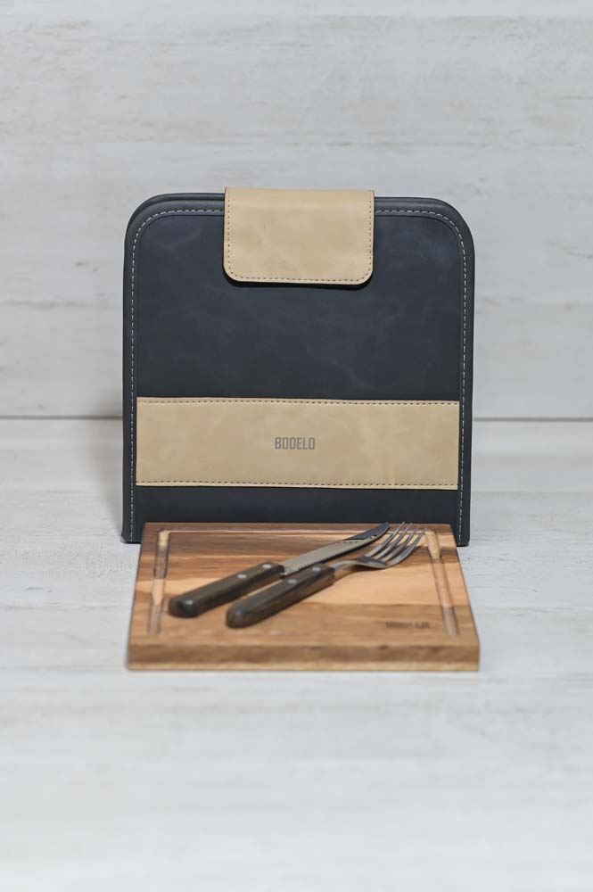 - Compartimiento para cubiertos y tabla.